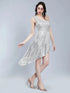 - The model with bust size 34", waist 25", hips 36" and height 5'10'' is wearing a size M.