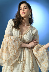 • Ruffle design with gathered patches, beads and sequin work all over front