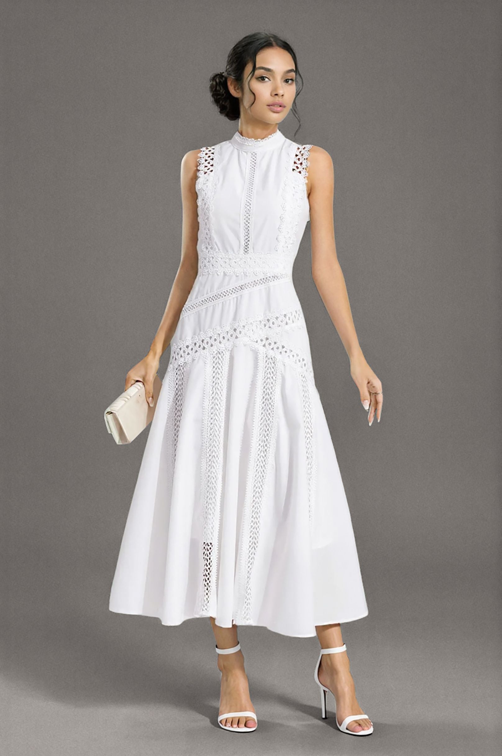 Turn heads in this elegant sleeveless lace dress, featuring a flattering waist-cinching silhouette and delicate lace detailing. Perfect for any season or occasion—be it a party, holiday, or evening out.