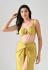 Shine bright in our luxe mustard bikini with a sculpted high-waist bottom, a gold metal centerpiece on the top, and a matching twisted front slit cover-up skirt. Designed to flatter every curve, this set takes you effortlessly from beachside lounging to sunset cocktails. A total summer slay, all in one look.