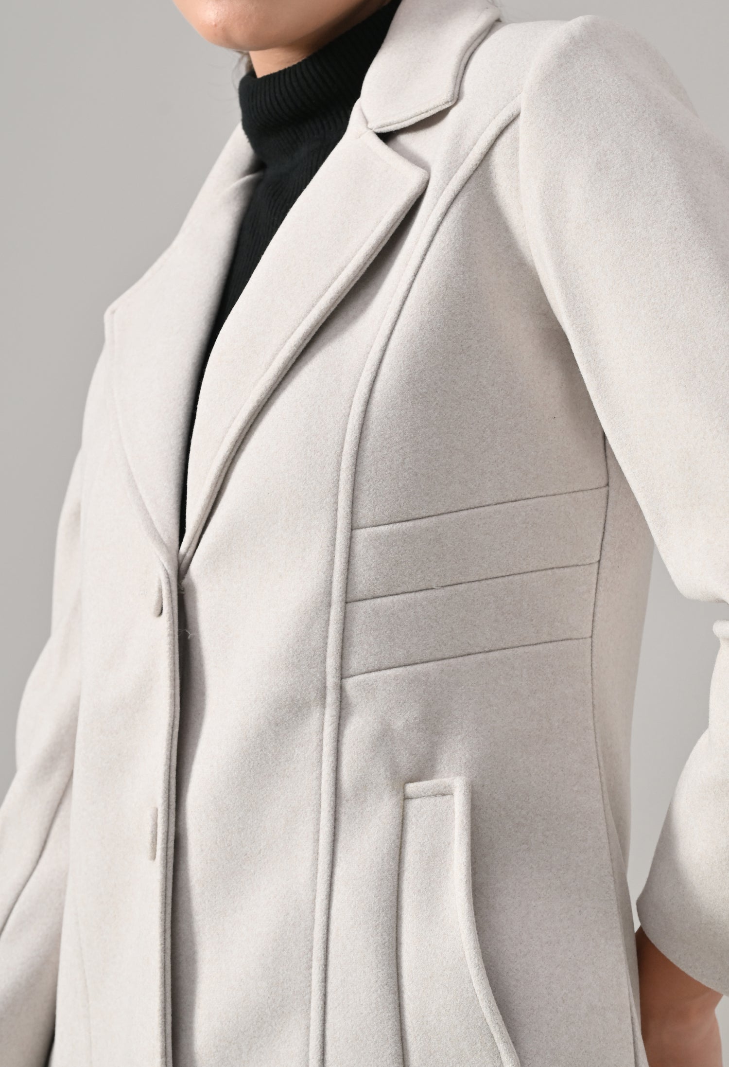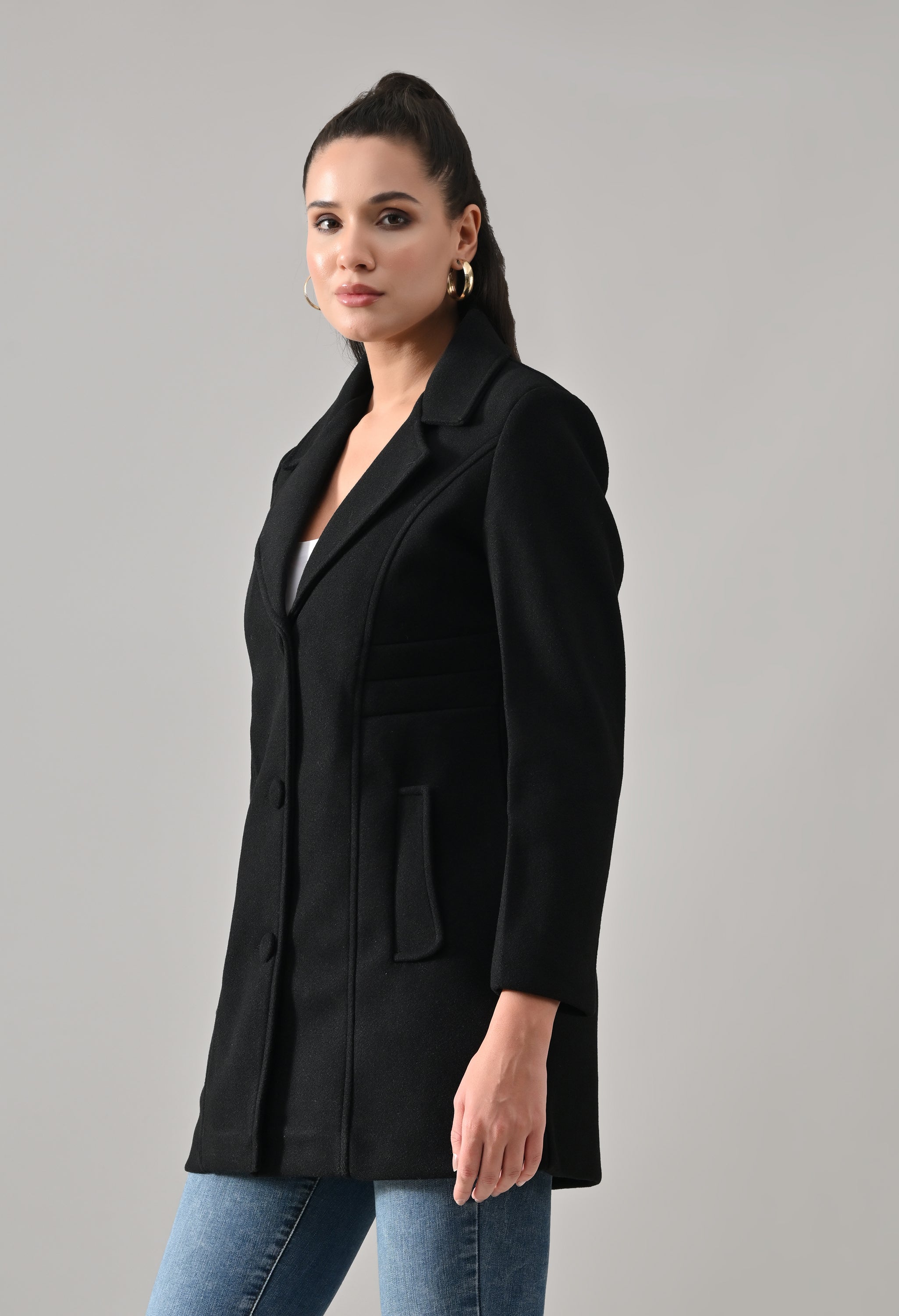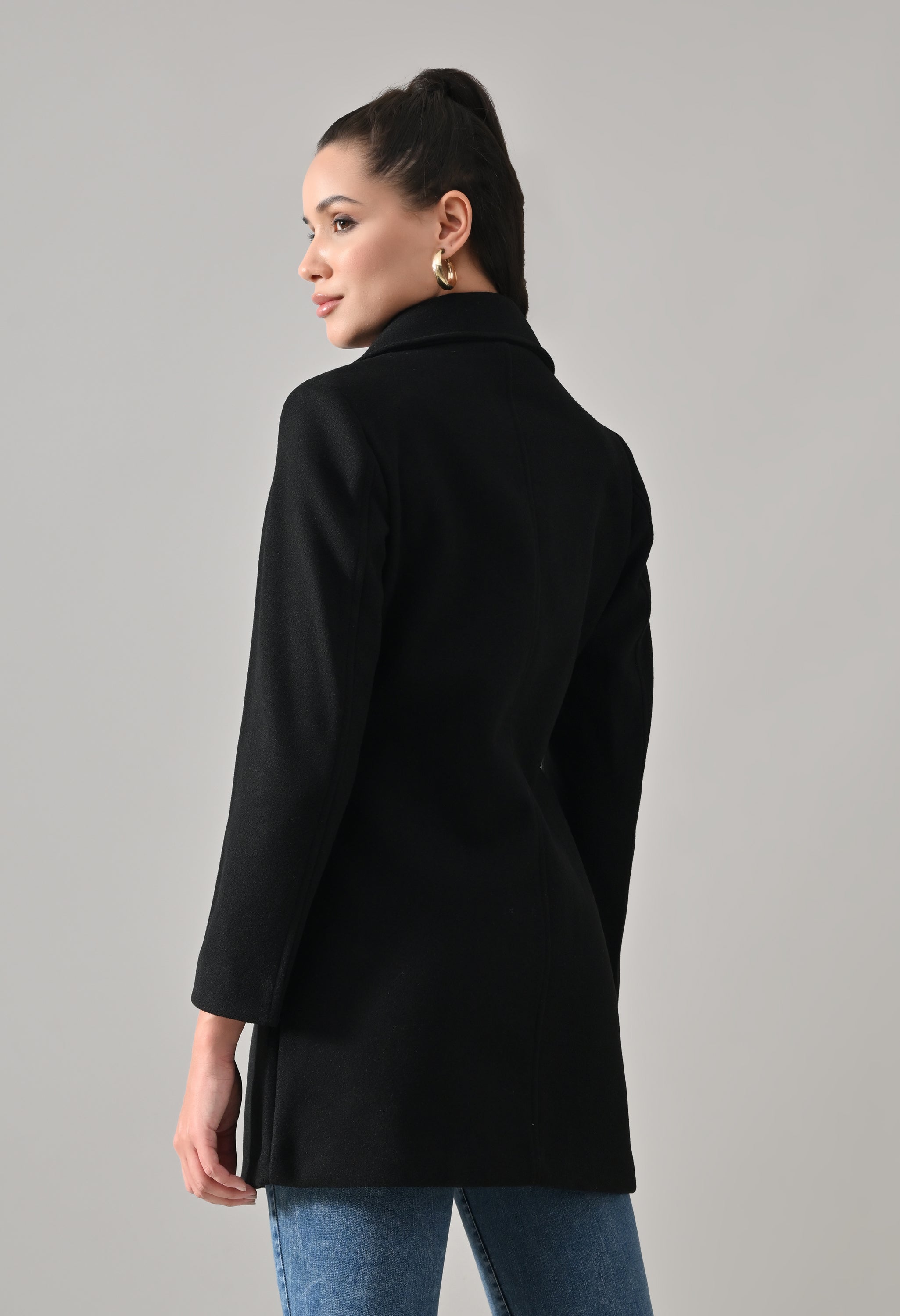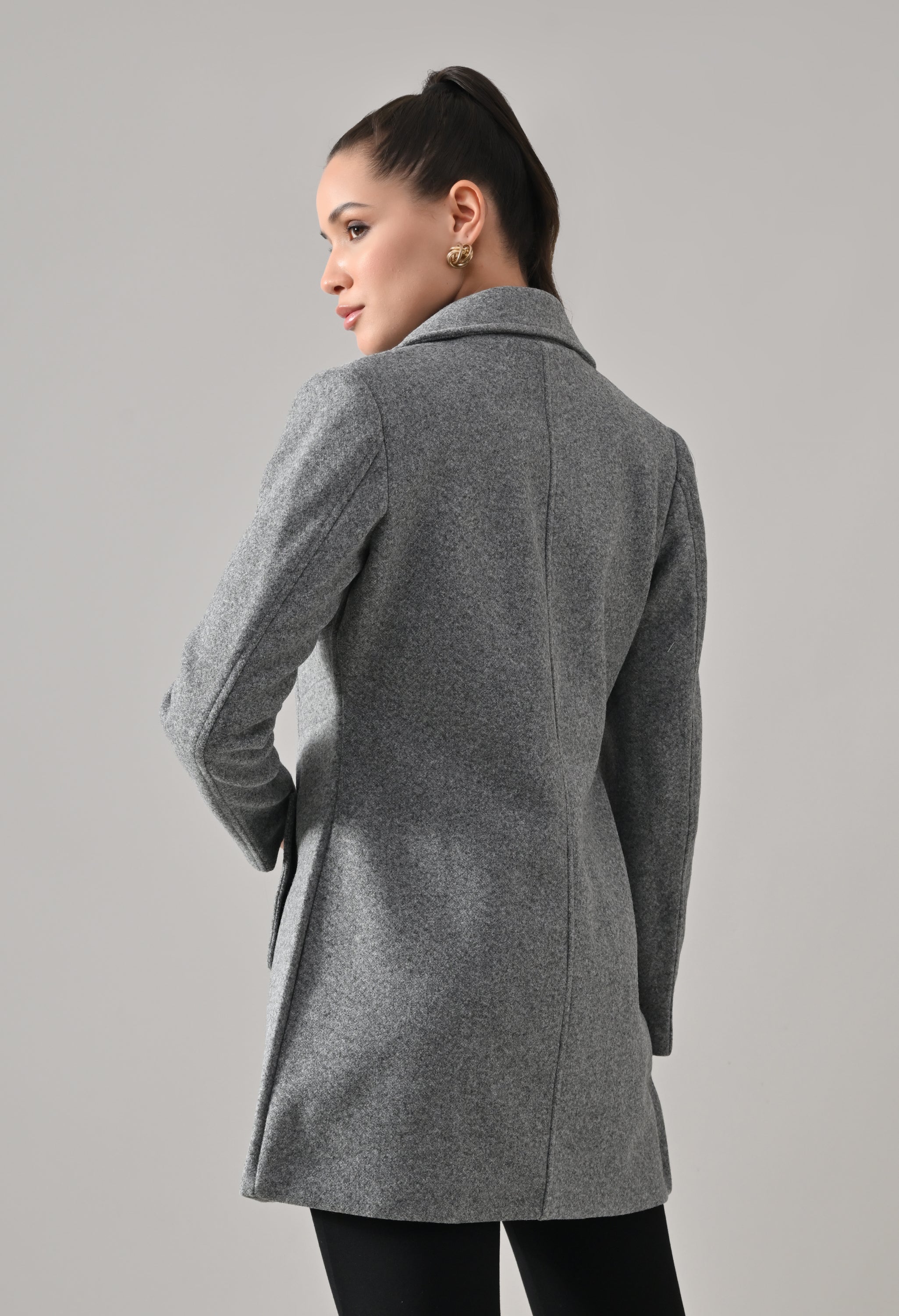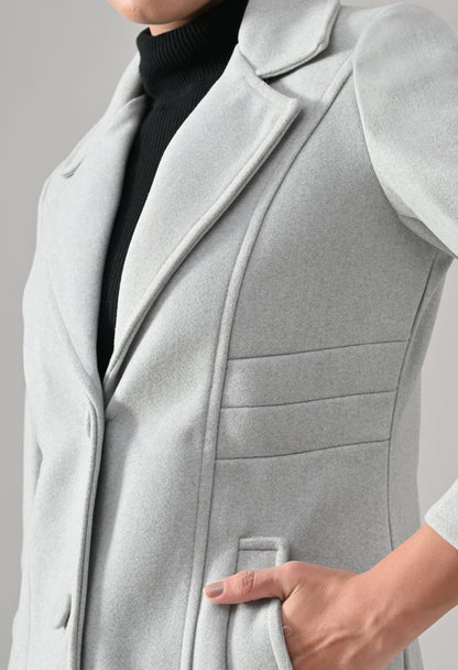 • Coat with notched lapel neckline with a structured fit