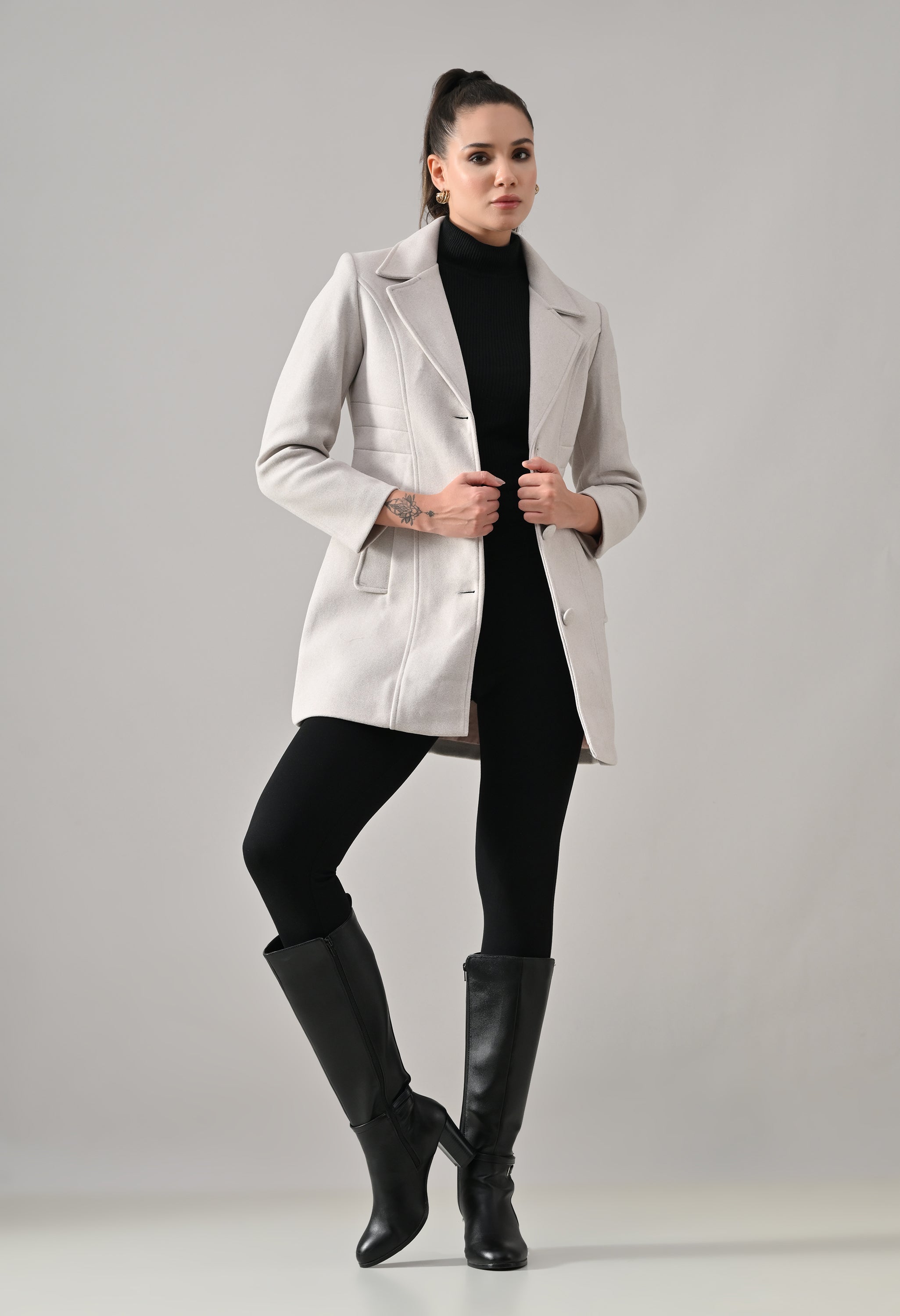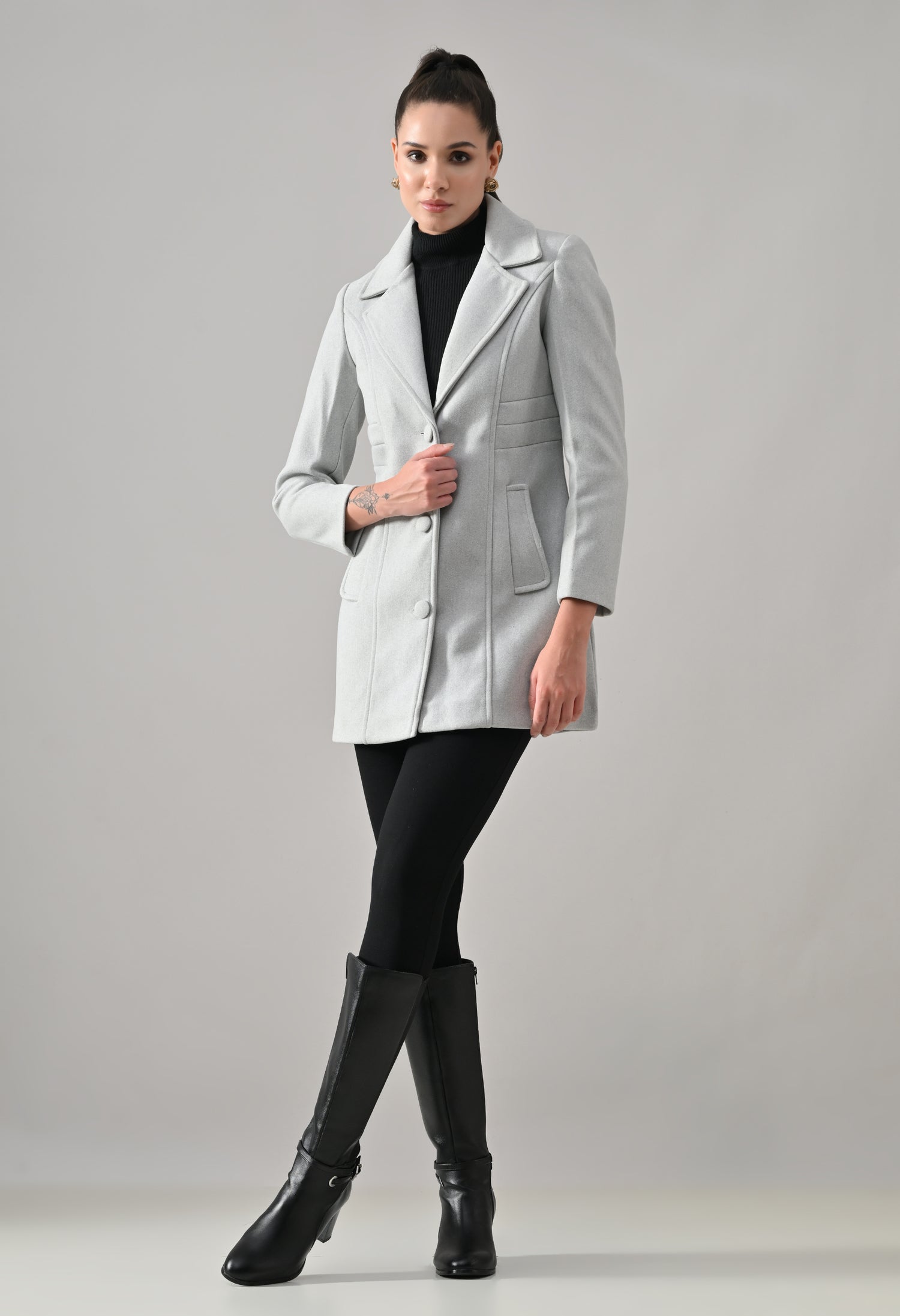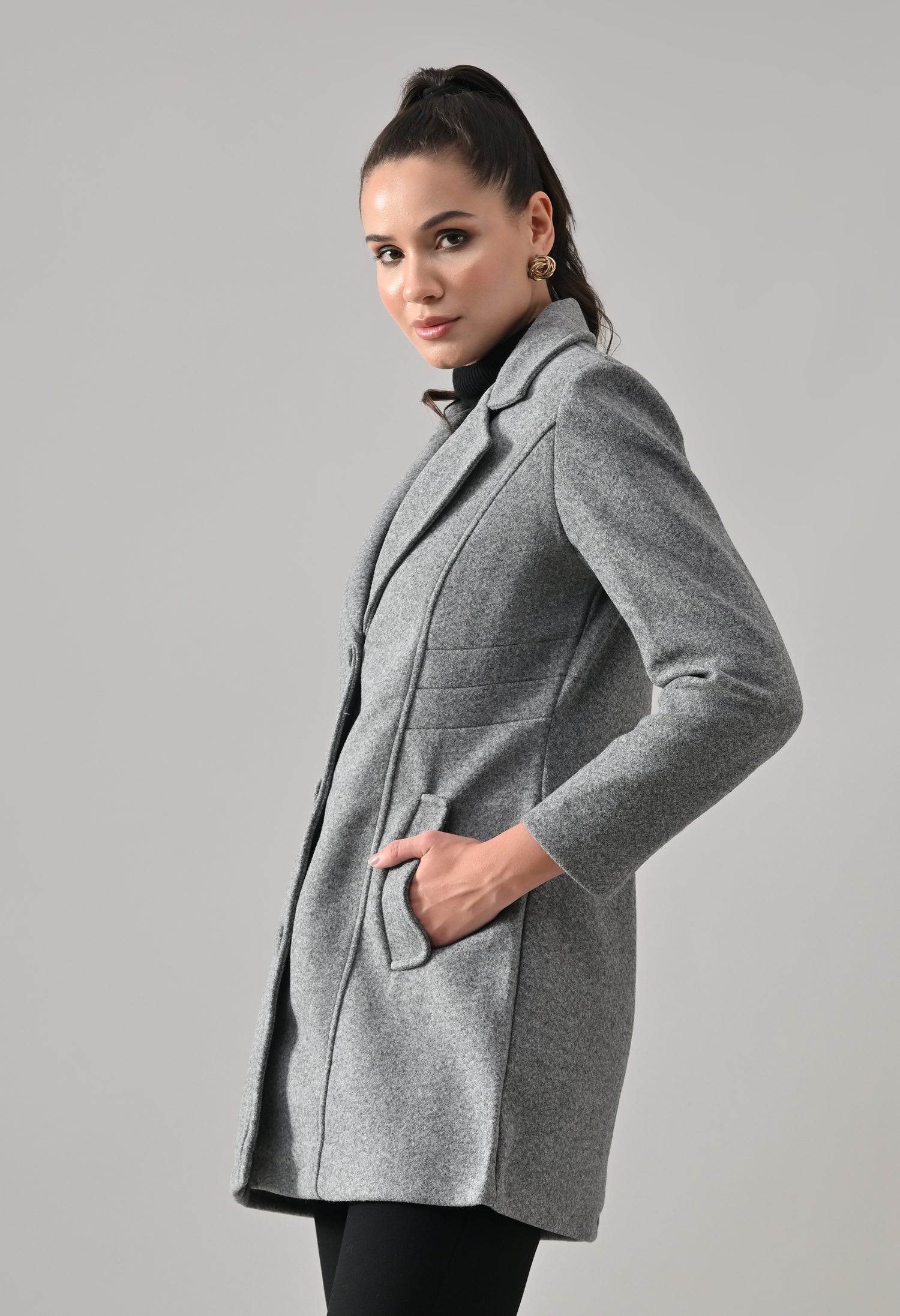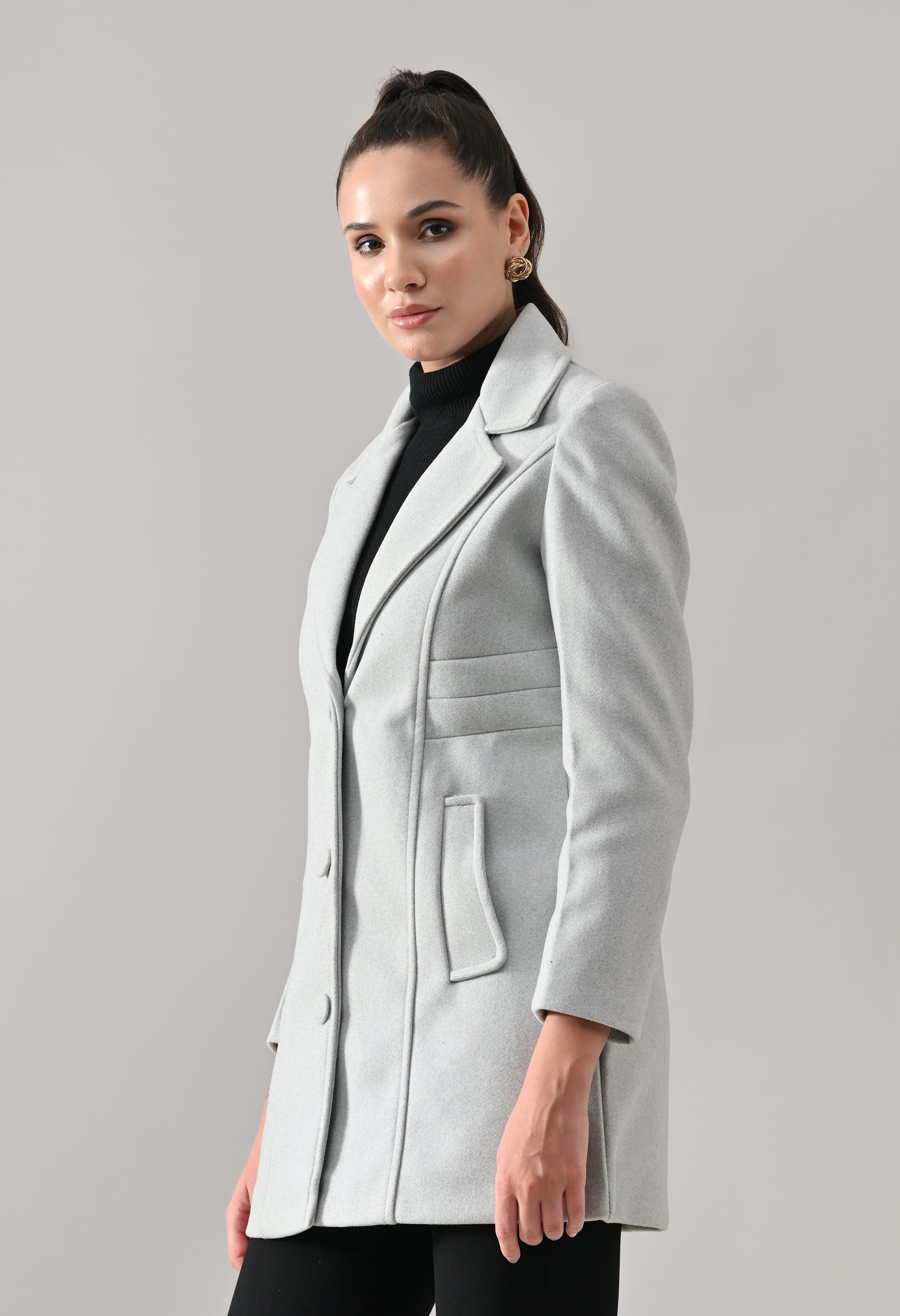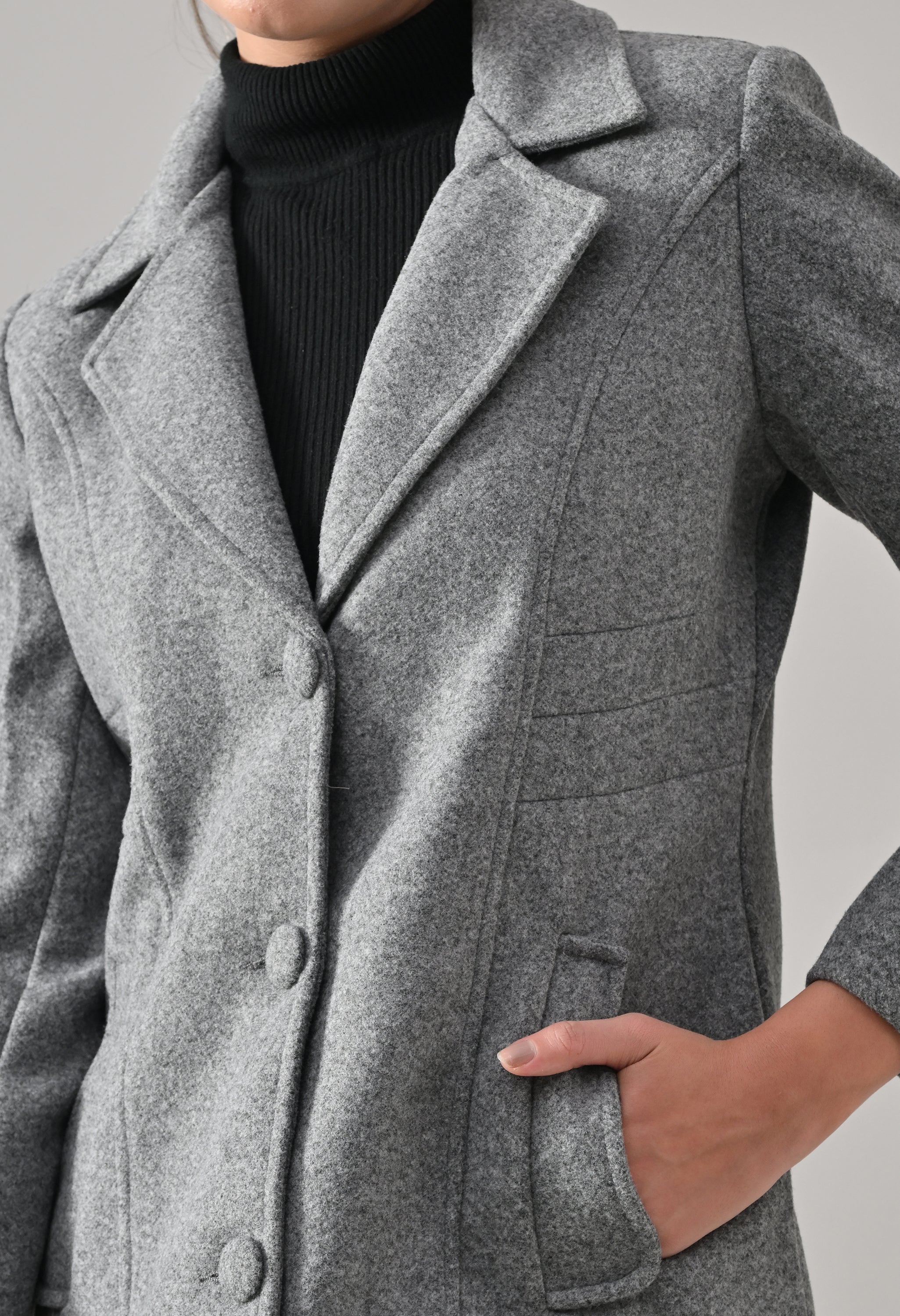 • Coat with notched lapel neckline with a structured fit
