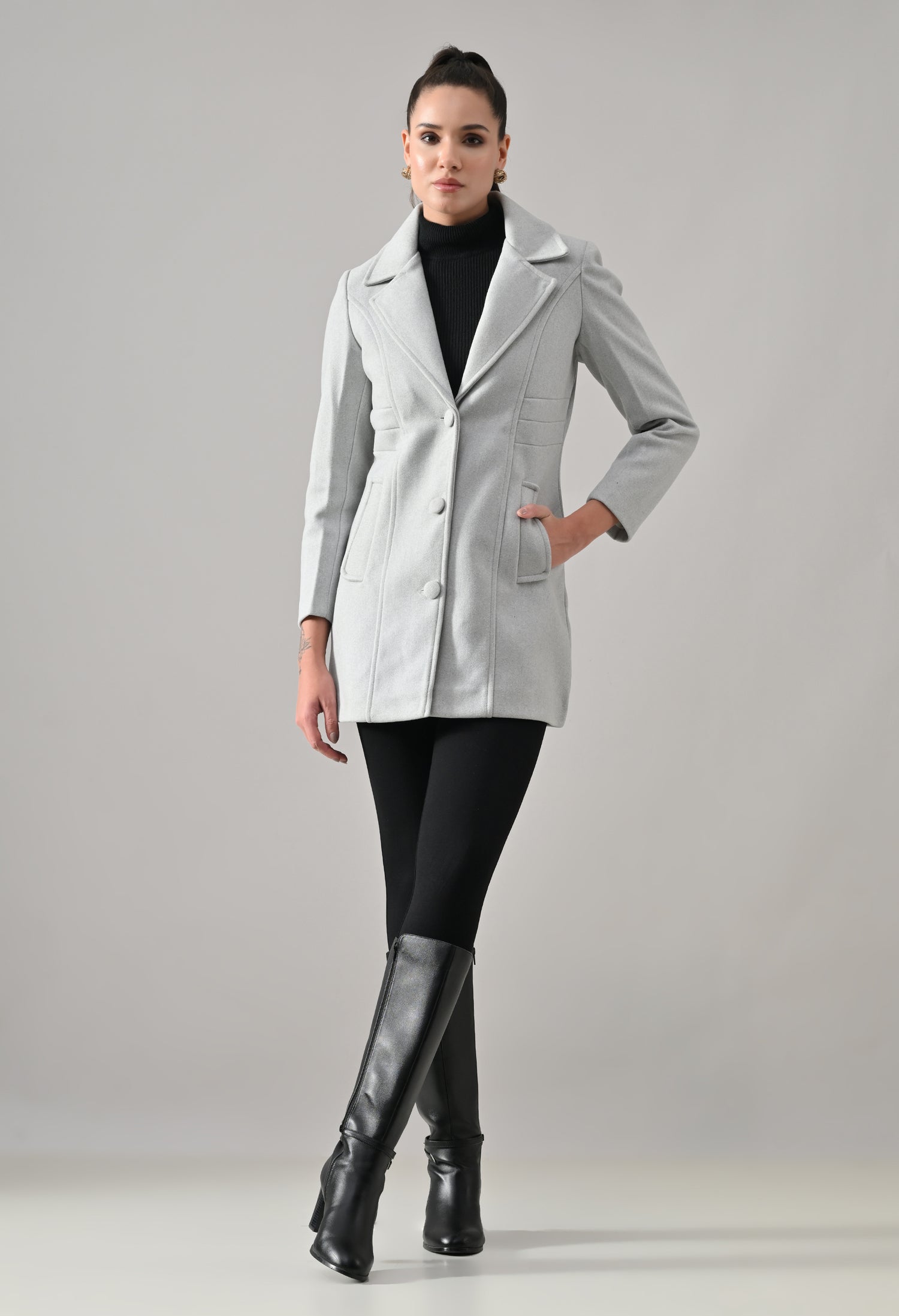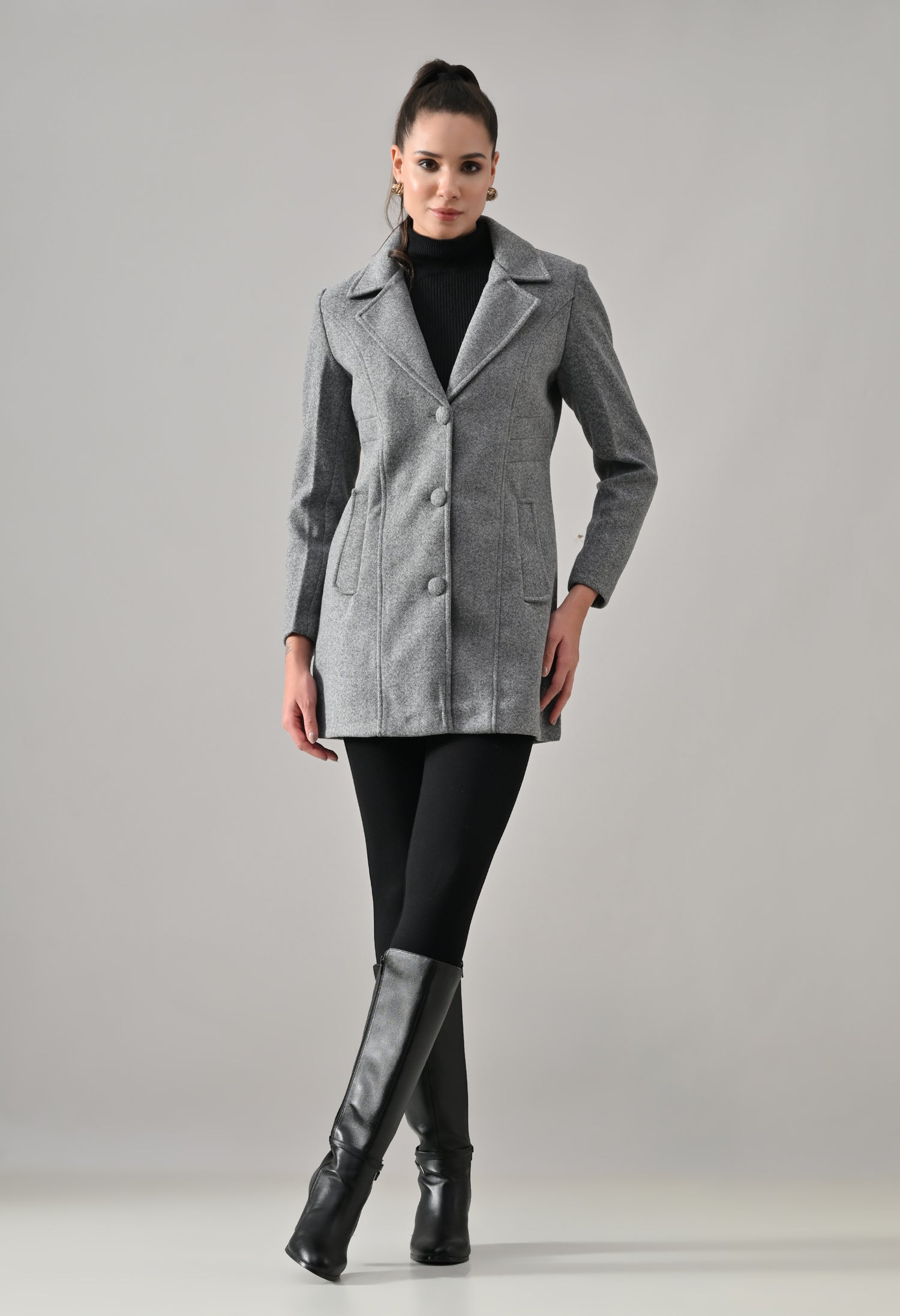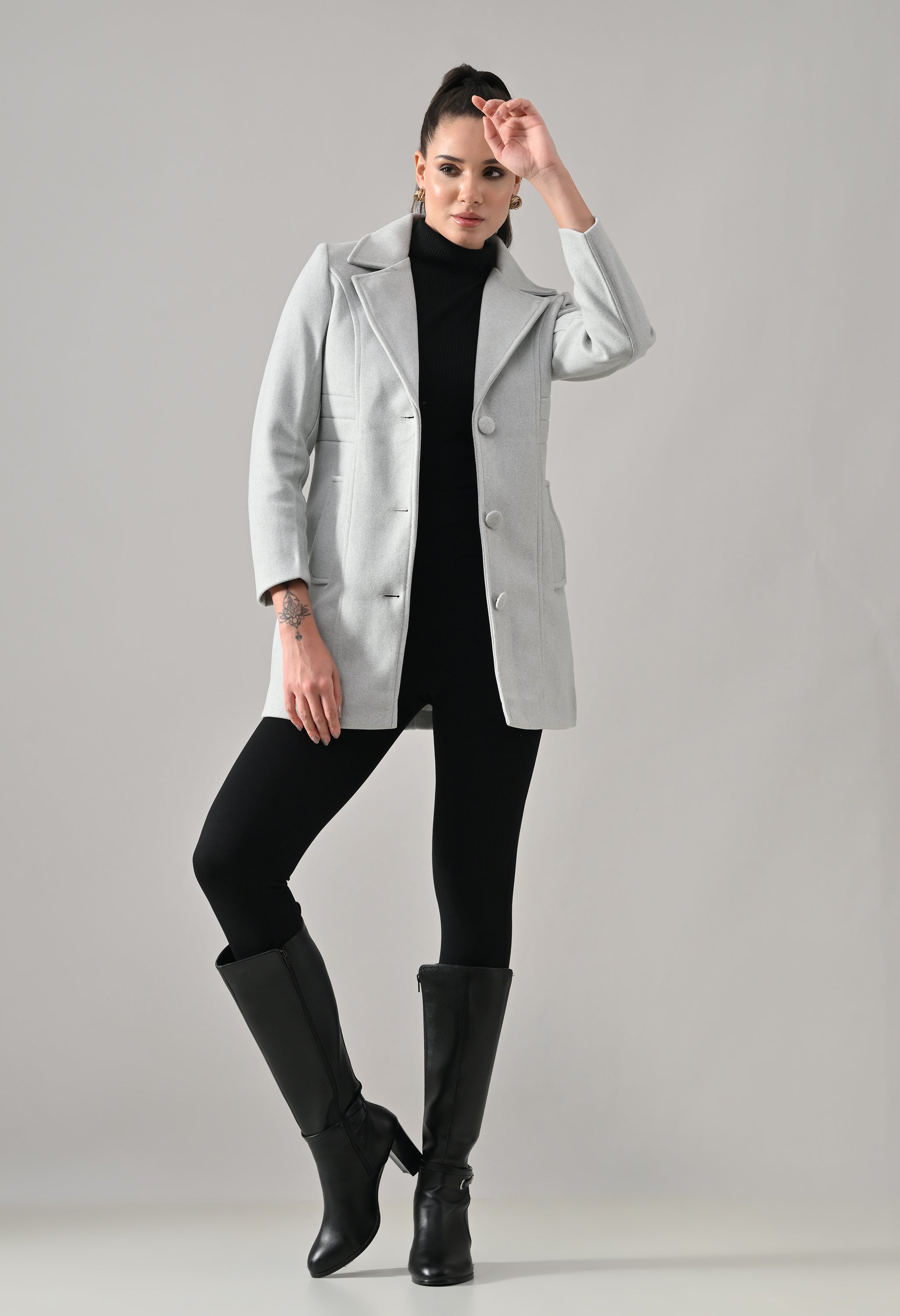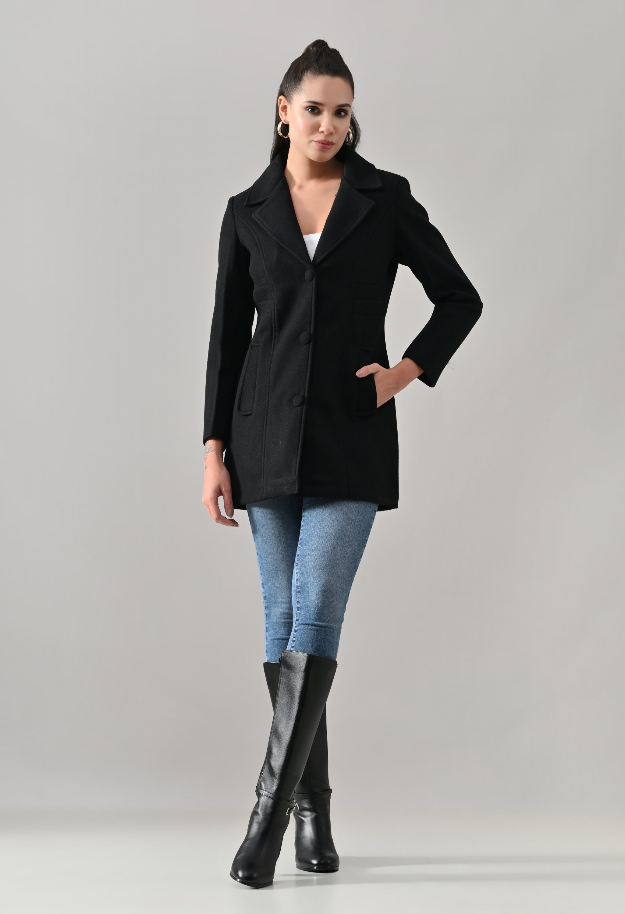 • Coat with notched lapel neckline with a structured fit