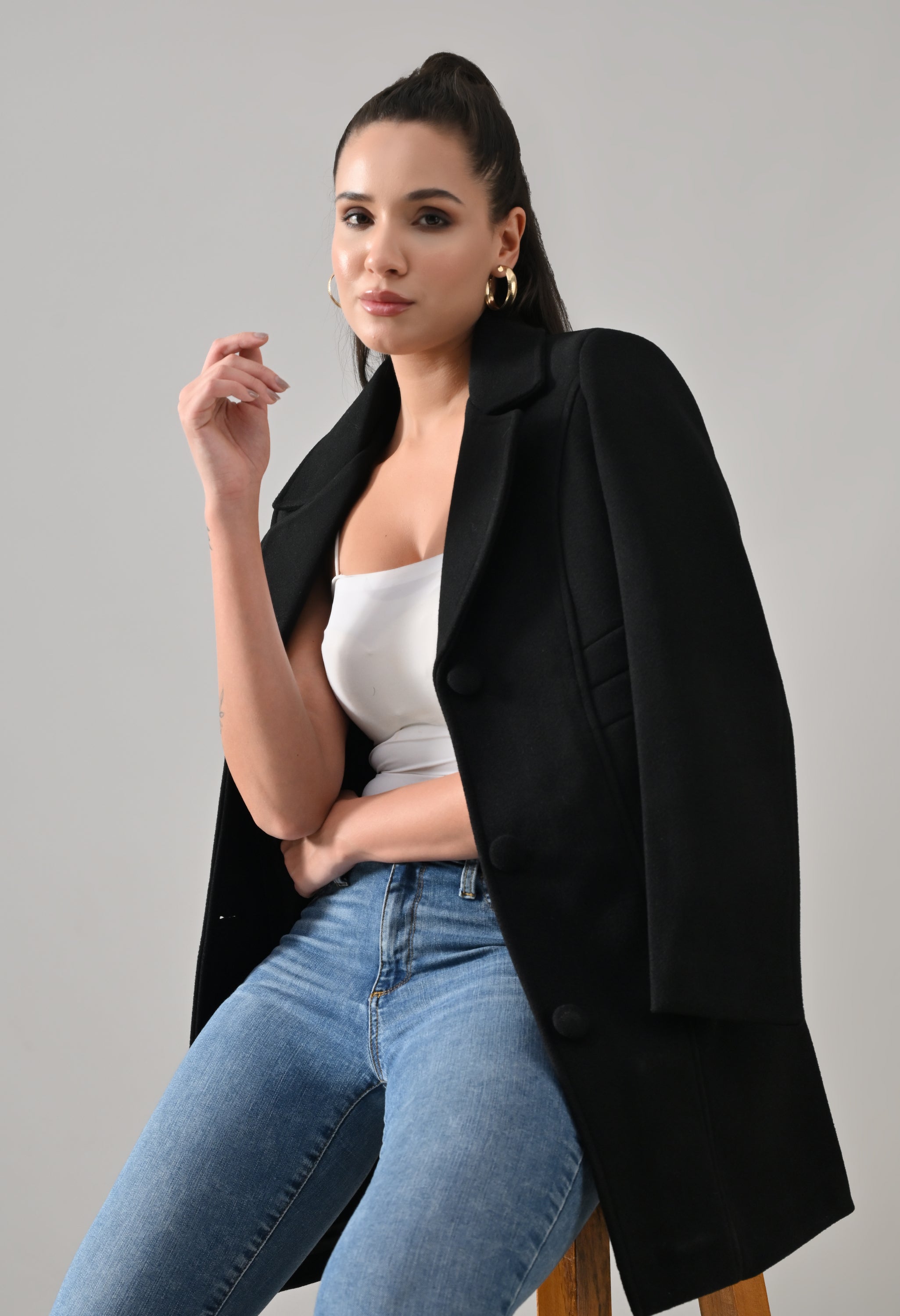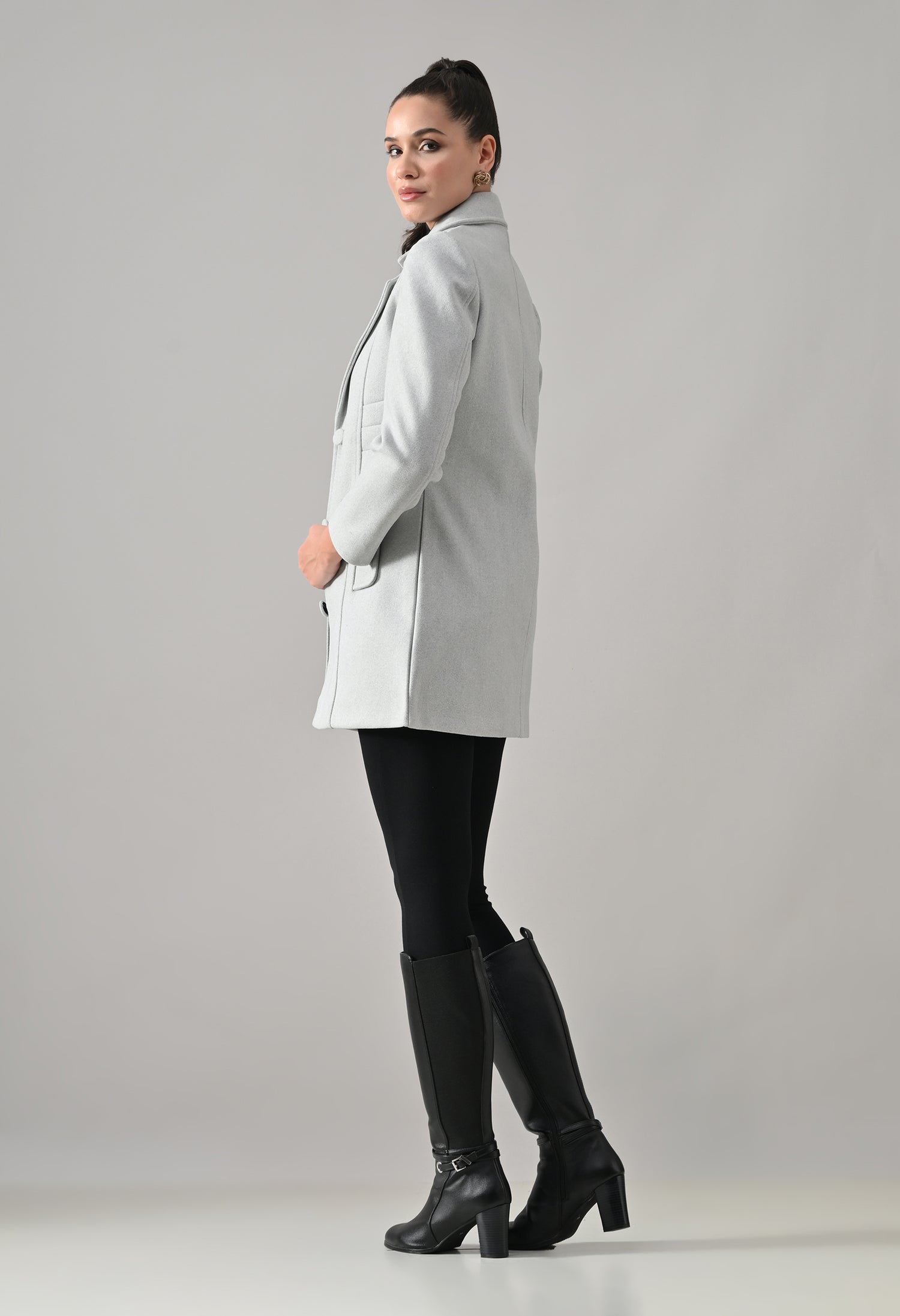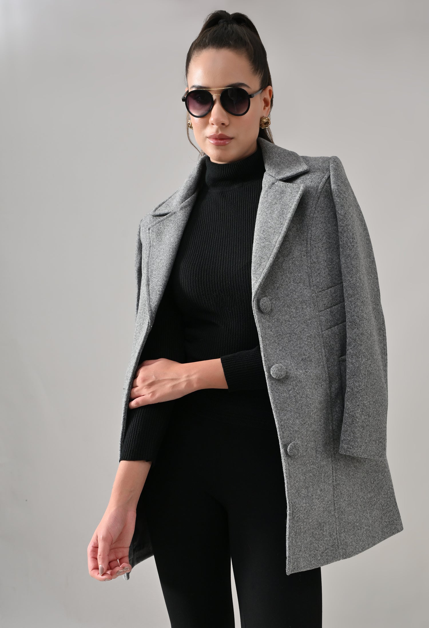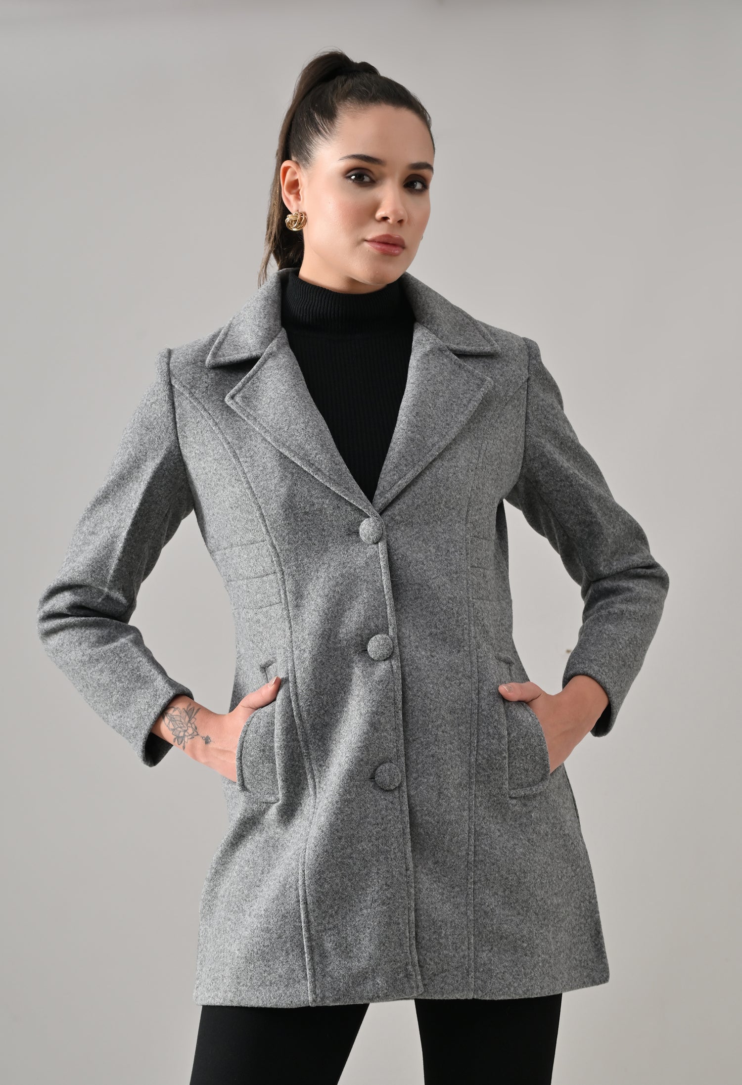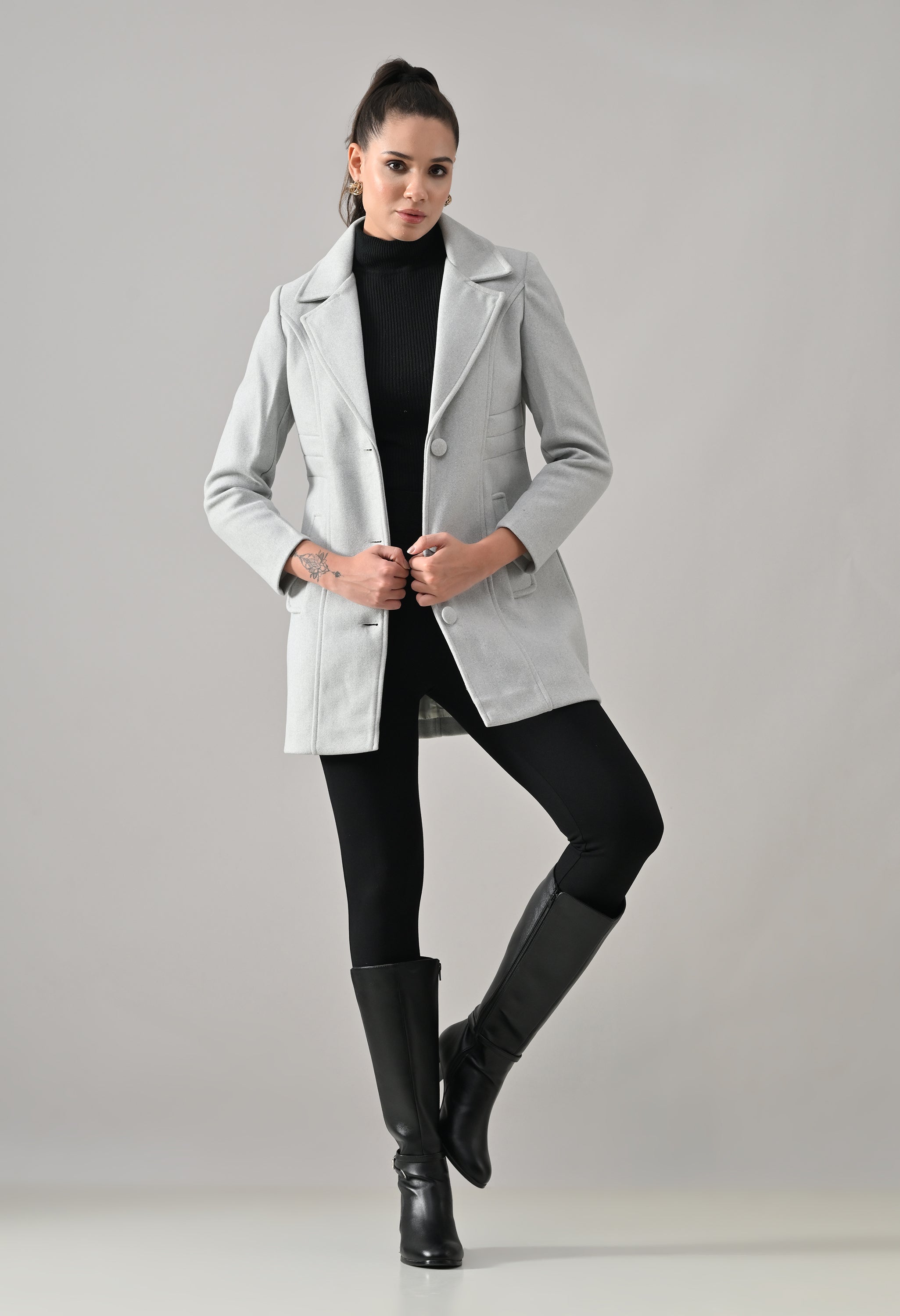 • Coat with notched lapel neckline with a structured fit